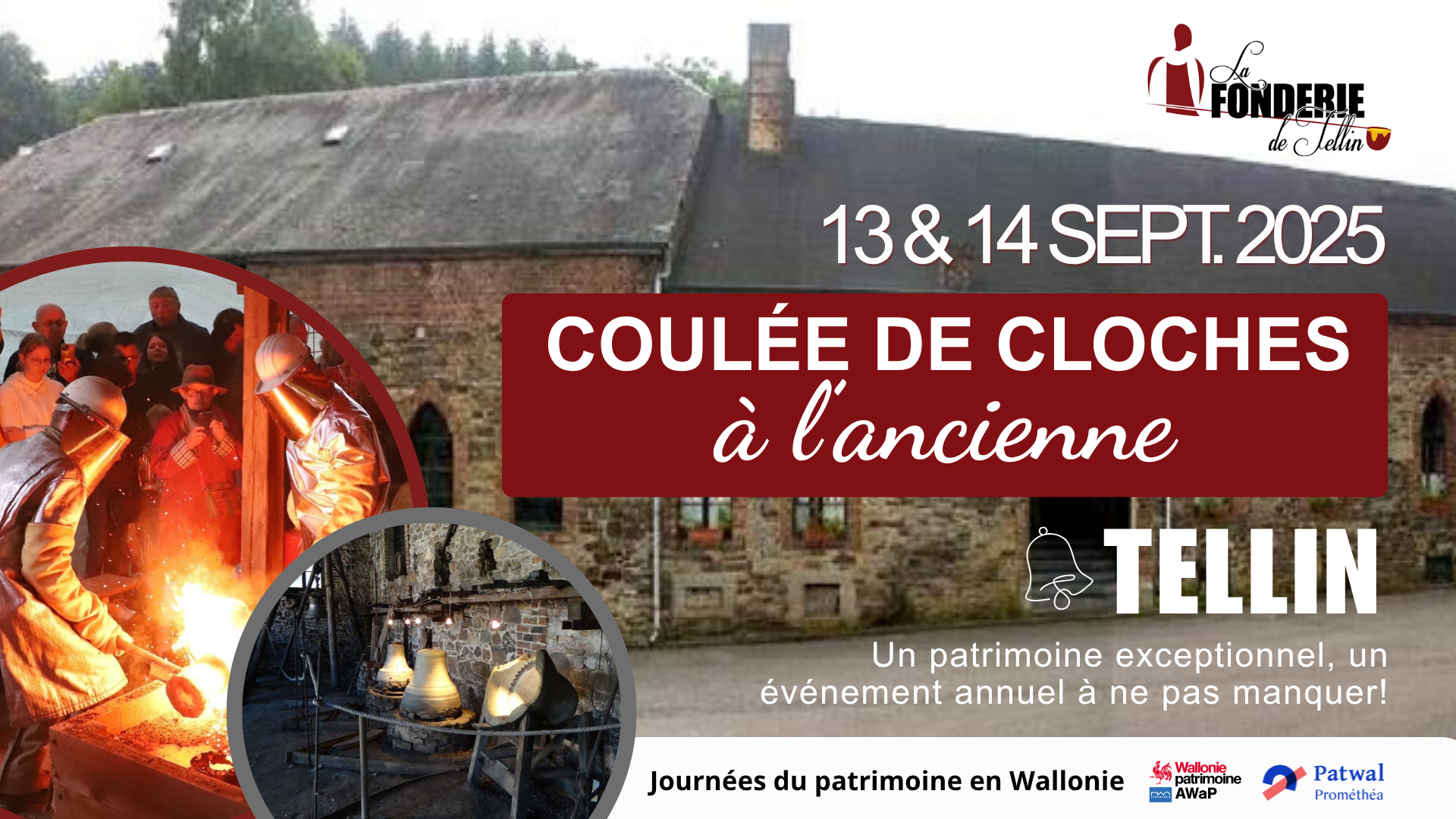 Bienvenue à l'ancienne fonderie des cloches de Tellin. Un site unique qui incarne l’histoire et le savoir-faire campanaire, une tradition séculaire qui résonne encore à travers ses bâtiments et outils d’époque. Nous sommes heureux de pouvoir vous accueillir et nous vous invitons à découvrir un pan de notre histoire et de notre patrimoine!